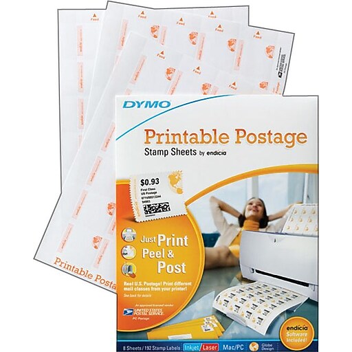 Dymo Postage Stamp Laser/Inkjet Shipping Labels, 8 1/2" x 11", White, 24 Labels/Sheet, 8 Sheets ...